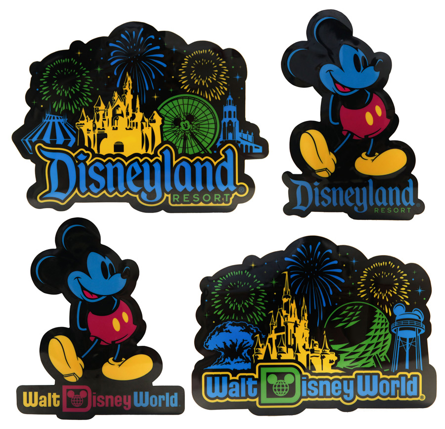 John shared with me four more designs that will debut later this year. Two designs will feature Mickey Mouse with logos for Disneyland and Walt Disney World Resorts. The other two will feature icons from each Disney Resort destination.