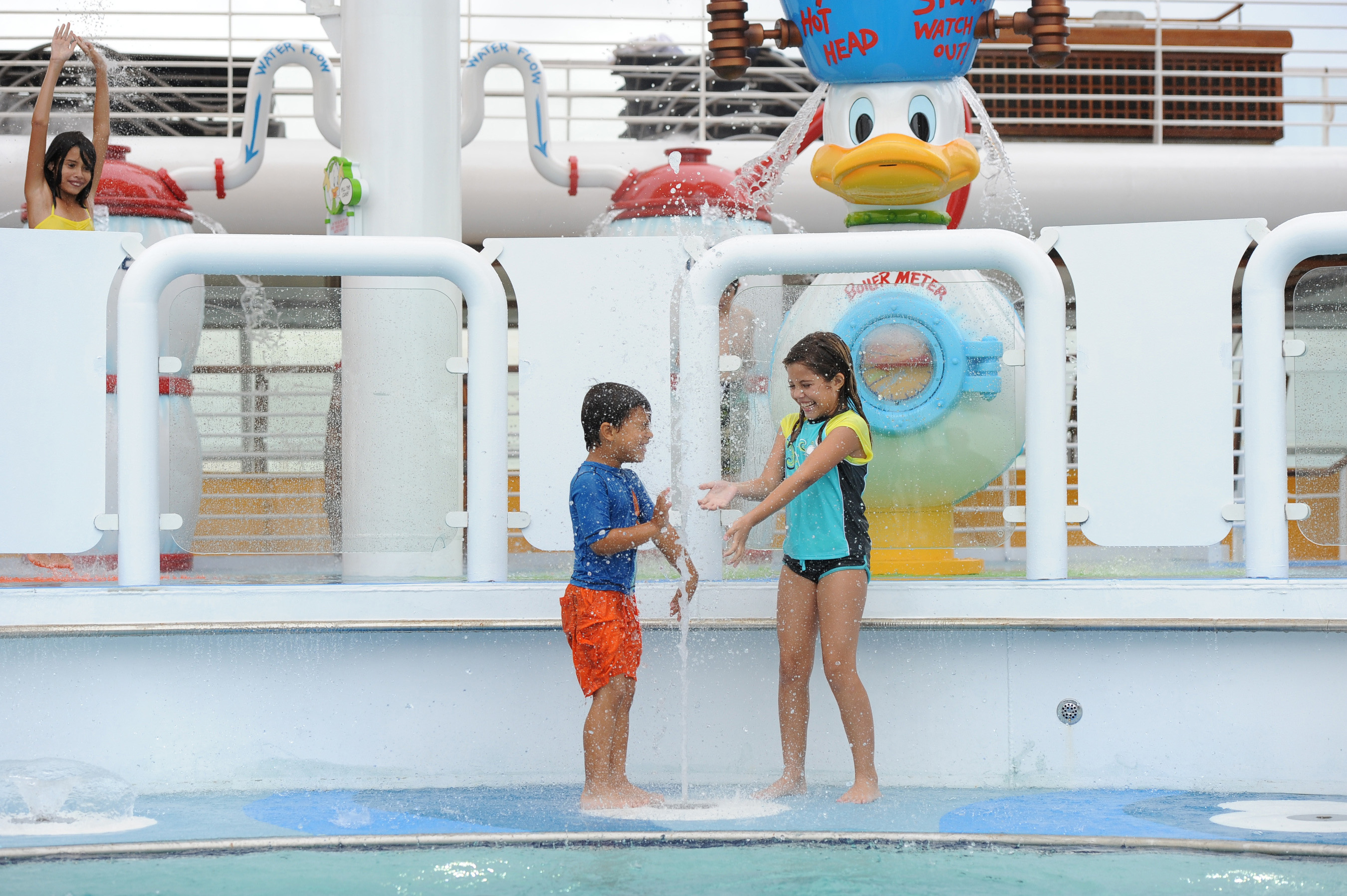Of course, Huey, Dewey and Louie didn’t forget about the smallest cruisers. Their final creation on the re-imagined Disney Magic, Nephew’s Splash Zone, stars none other than … themselves! Each of Donald Duck’s nephews are represented by a squirting figure in this toddler wet play area, alongside lots of other fun, interactive water features.